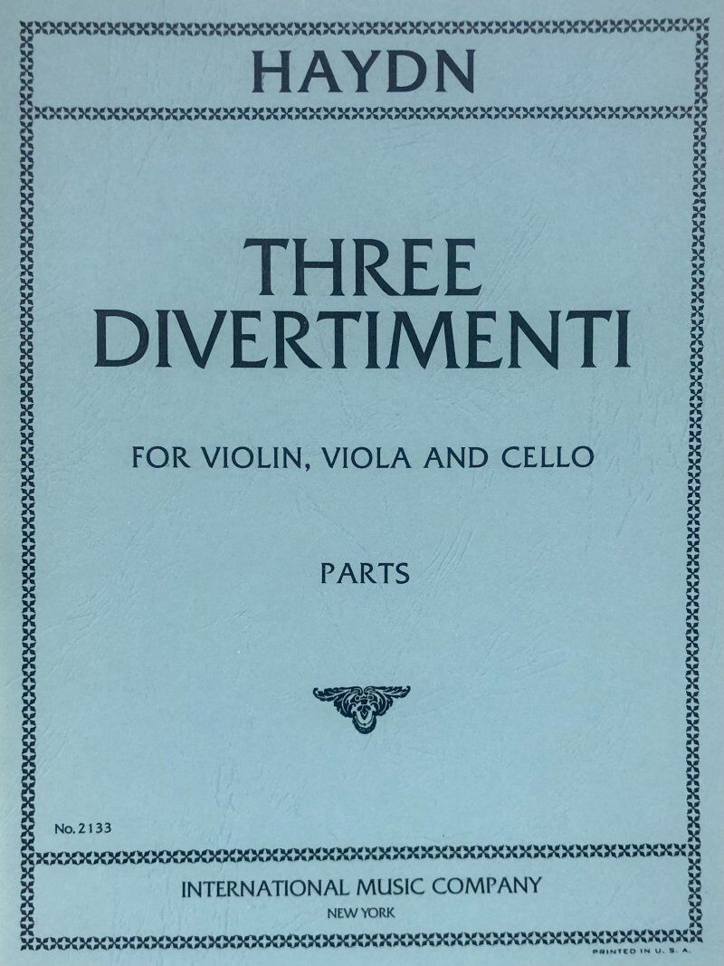 Composed by Franz Joseph Haydn (1732-1809). Parts for Three Divertimenti for Violin, Viola and Cello 3 Divertimenti Composer: Joseph Haydn Publisher: International Music Company Instrument: Violin|Cello|Viola Format: String Trio Pages: 1