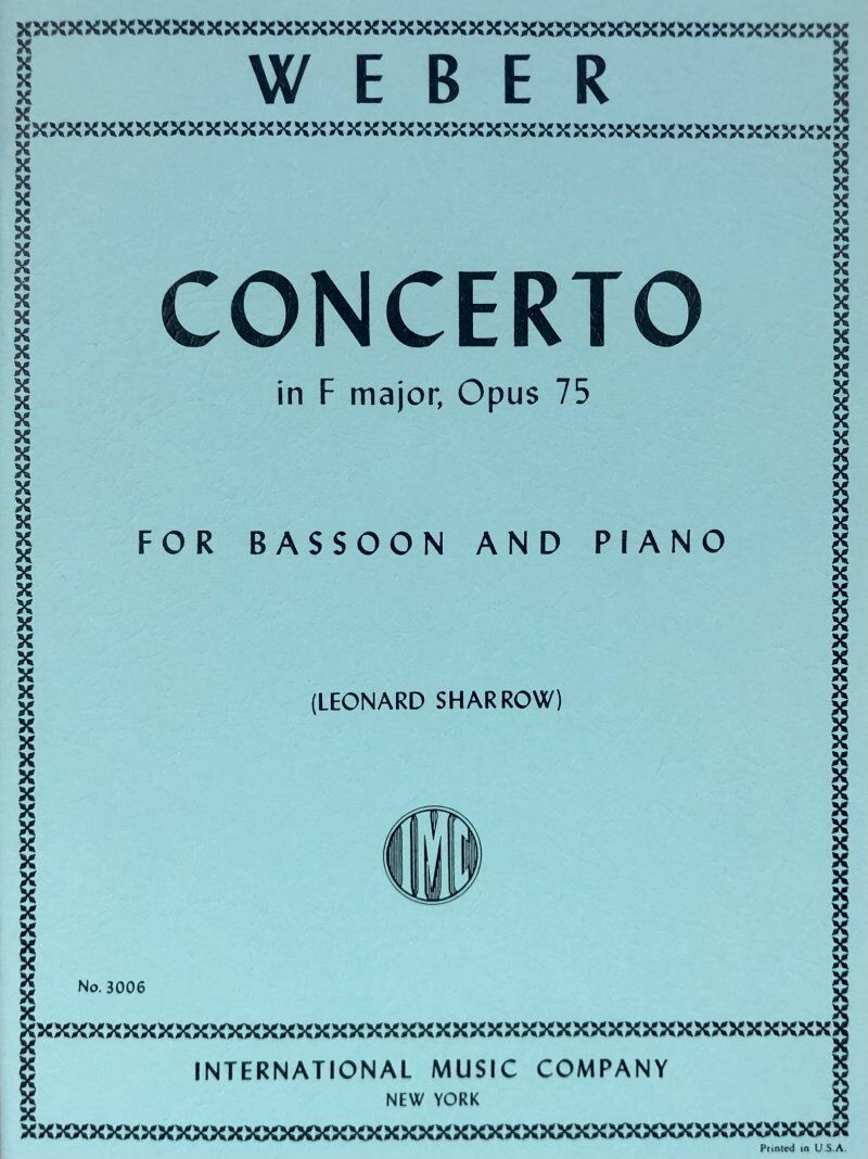 Composed by Carl Maria von Weber (1786-1826). Edited by Leonard Sharrow. Score and part. Concerto in F major, Op. 75 Composer: Carl Maria von Weber Publisher: International Music Company Instrument: Bassoon Pages: 1