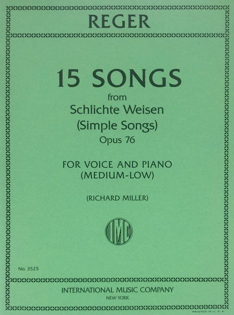 15 Songs from Simple Songs Op. 76 for Medium-Low Voice and Piano by Max Reger