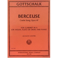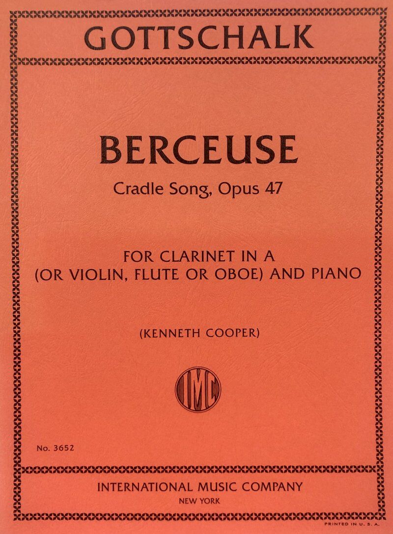 Composed by Louis Moreau Gottschalk (1829-1869). Edited by Kenneth Cooper. Arranged by Kenneth Cooper. Score and parts. For Clarinet in A (Or Violin, Flute or Oboe) and Piano Berceuse Op. 47 Composer: Louis Gottschalk Publisher: International Music Company Instrument: Clarinet Pages: 1