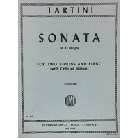 Sonata in D major (with Cello ad lib.) Composer: Giuseppe Tartini Publisher: International Music Company Instrument: Violin Format: Violin Duet Pages: 1