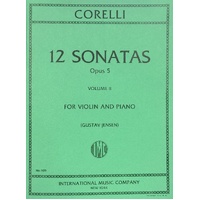 Baroque sonatas are sometimes defined as pre or post Corelli. Such was the influence of Corelli's Violin Sonatas which he published in 1700. This Volume includes No.s 7 to 12 which have been edited by the violinist and composer Gustav Jensen. Intermediate to advanced level. Twelve Sonatas Op. 5 Vol 2 (No's 7, 8, 9, 10, 11, 12) Composer: Arcangelo Corelli Publisher: International Music Company Instrument: Violin Pages: 1