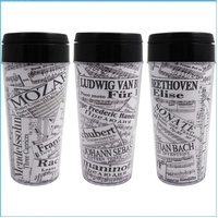 These are one of a kinds music tumblers that show a collage of differentnames of music icons. Sheet Music Collage Travel Tumbler Publisher: AIM Gifts