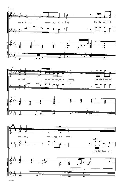 A powerful theme song for your next concert! Open and close with this one, programming other "music is a universal language" songs in between. A majestic fanfare introduces the stirring balladic melody with riveting harmonies that students will love to sing. Starts strong and stays strong with a treble trio soaring above the final refrain. Perform with live SoundPax instrumentation or use the professionally recorded SoundTrax CD. SoundPax includes parts for a. sax., t. sax., 2 tpt., 2 tbn., rhy., perc. For the Love of Music Composer: Russell L. Robinson Publisher: Alfred Music Instrument: Choral Pages: 12 Series: Alfred Choral Designs