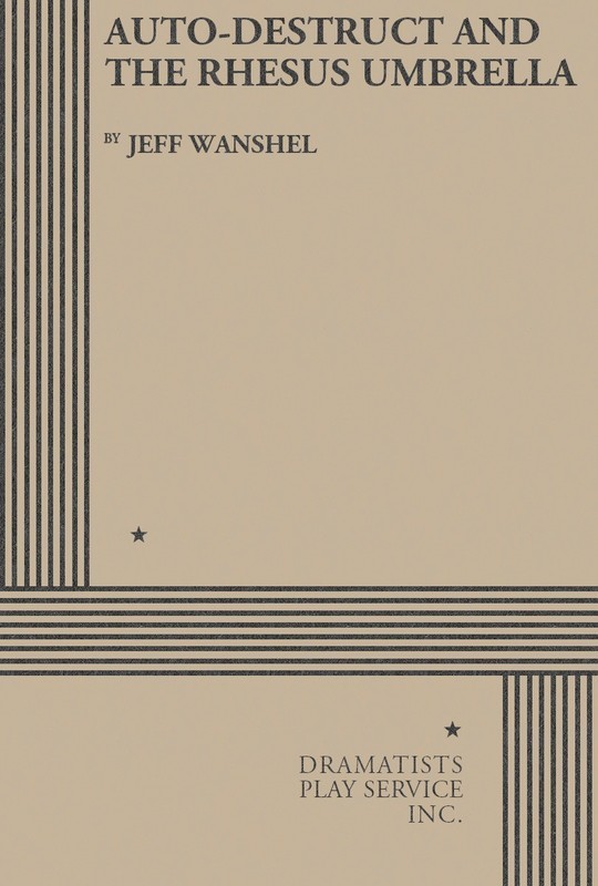 THE STORIES: AUTO-DESTRUCT. Briefly described, the action of the play is the story of a man who robbed the Bank of Mexico and married a gas station attendant. To be sure, there's a bank robbery; a double-cross; a getaway scene; and a passel of sneaky, slimy Mexican heavies who, after being shot, shortly reappear in different costumes. And the hero does marry the person who repairs his car - although with identities shifting so rapidly it's not always easy to tell who's who. But, in this wildly funny parody of the Hollywood western, it is the action that counts and the zany, offbeat, imaginative lunacy that the author provides in nonstop profusion. (7 men.) THE RHESUS UMBRELLA. The setting is a laboratory, where scientists are probing into the nature of love by experimenting with giant Rhesus monkeys. The son of one of the scientists is in love with the daughter of another - but she is committed to her father's research. The solution: The son dresses in a monkey suit; thereby fooling the nearsighted scientists; winning the fair maiden; and bearing out the theory that while love between Rhesus monkeys is an impossibility, love between a monkey and a human being may well be the wave of the future. (6 men, 3 women.)