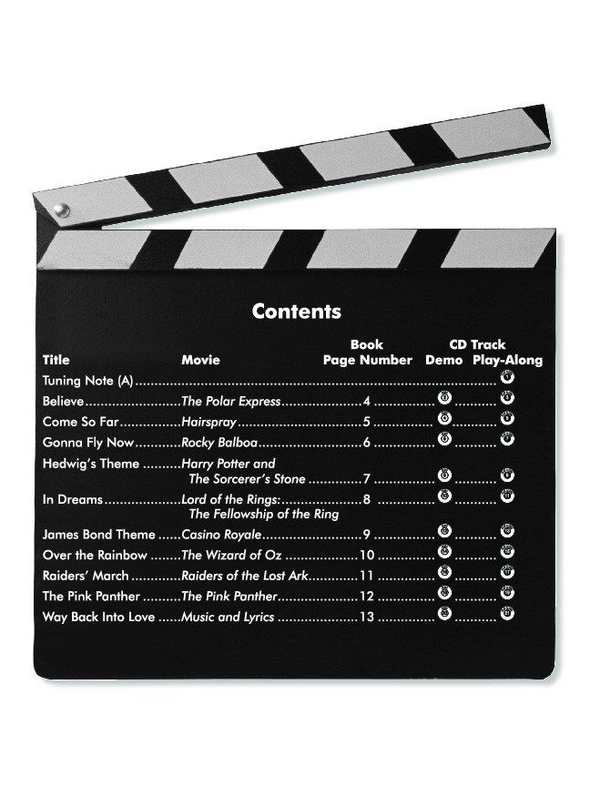 Easy Popular Movie Instrumental Solos is an accessible selection of movie hits for the beginning student, with simple notation and a play-along CD. Available for flute, clarinet, alto saxophone, tenor saxophone, trumpet, horn in F, trombone, violin, viola, cello and piano accompaniment. The string versions include a pullout piano accompaniment. Titles: Believe (The Polar Express) * Come So Far (Hairspray) * Gonna Fly Now (Rocky Balboa) * Hedwig's Theme (Harry Potter and The Sorcerer's Stone) * In Dreams (Lord of the Rings: The Fellowship of the Ring) * James Bond Theme (Casino Royale) * Over the Rainbow (The Wizard of Oz) * The Pink Panther Theme (The Pink Panther) * Raiders March (Raiders of the Lost Ark) * Way Back Into Love (Music and Lyrics) This title is available in SmartMusic. Easy Popular Movie Instrumental Solos Violin Publisher: Alfred Music Instrument: Violin Pages: 36 Series: Easy Instrumental Solos Series