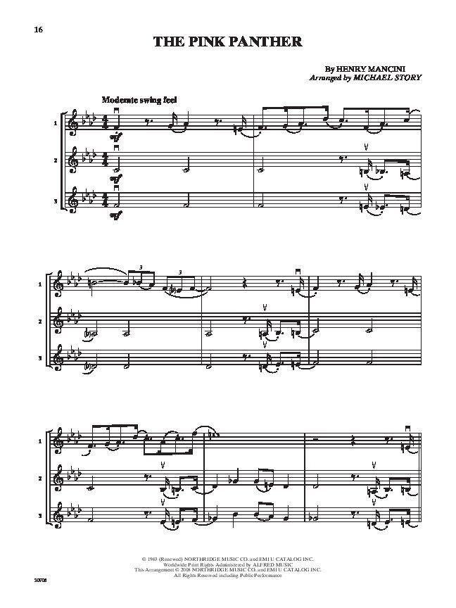 Pop Trios for All is a versatile, educational, and fun series intended for like or mixed instruments to perform in any size group or combination of instruments. All books are in score format with each line increasing in difficulty from Grade 1 to Grade 3-4. Alternate passages and notation are included to suit instrumental ranges. With no page turns required, the songs and measures are consistent which makes finding rehearsal points quick and convenient. Perfect for concerts with family and friends, recitals, auditions, and festivals. Available for brass, woodwinds, strings, and percussion. Titles are: Old Time Rock and Roll * Sing, Sing, Sing * Hedwig's Theme * You Raise Me Up * All I Wanna Do * The Magnificent Seven * This Is It! * Mack the Knife * Can You Read My Mind? * Crazy In Love * The Pink Panther * Star Wars Main Title * I'll Be There For You * American Idiot * Hips Don't Lie. Pop Trios for All (Revised) Violin Arranger: Michael Story Publisher: Alfred Music Instrument: Violin Pages: 24 Series: For All Series