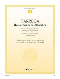 The tremolo study 'Recuerdos de la Alhambra' composed in 1896 is, without doubt, the most famous piece by the Spanish composer and guitarist Francisco Trrega, bringing back memories of the fortified Moorish palace situated on a hill in the Spanish city of Granada. The charming, slightly melancholy melody - perhaps inspired by Georges Bizet's 'Je crois entendre encore' from 'The Pearl Fishers' - makes it ideal for performing with other melodic instruments and piano. Recuerdos De La Alhambra Alto Sax Pno Composer: Francisco Tarrega Publisher: Schott Music Instrument: Saxophone Pages: 8