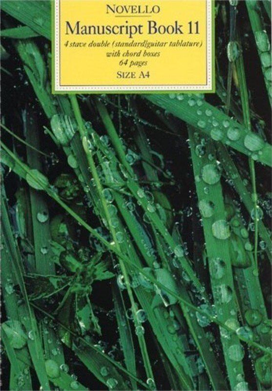 4 staves double (standard/guitar tablature) with chord boxes. 64 pages. Please note that the staves are not printed on both sides of the page. Novello Manuscript Book 11 A4 Spiral Publisher: Novello Instrument: Guitar Pages: 1