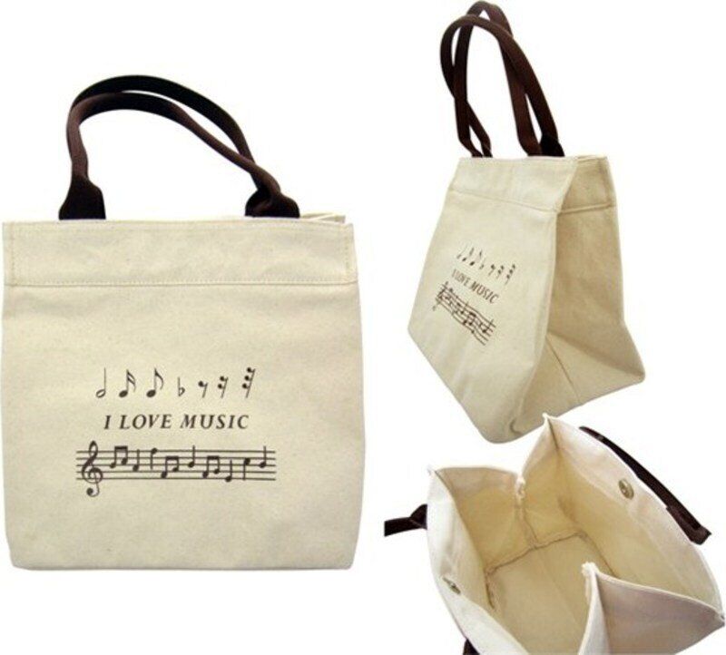 This mini cotton tote bag is decorated with the words "I Love Music" between music notes and clefs. Fastens closed with a single magnetic fastener. Internal dimensions: 24 x 25 x 15cm (H x W x D). Part of the comprehensive range of music gifts from Music