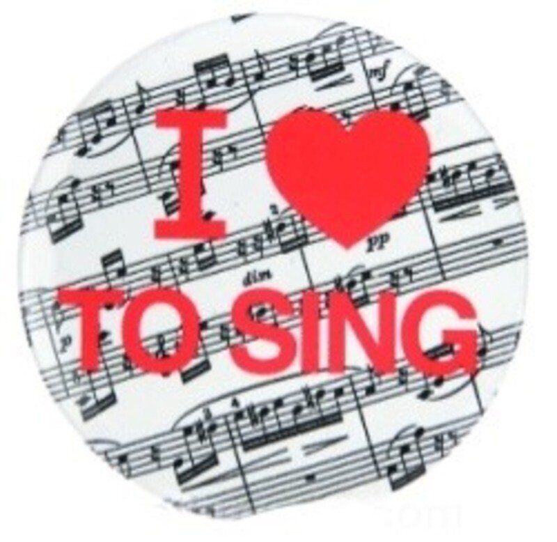 There'll be no doubt as to what you're into when you pin on one of these large tin buttons. Say it loud...say it proud! Button I Love To Sing Publisher: AIM Gifts