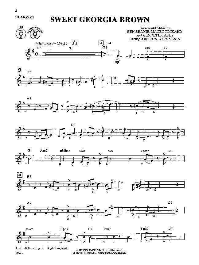 Each collection contains 11 songs arranged for the instrumentalist wanting to play in a jazz style -- without the need to learn to improvise. All of the books are compatible, with only minimal changes in the "variation" section to accommodate the ranges and unique characteristics of the instruments. The immortal and memorable motion picture titles are: Sweet Georgia Brown * Over the Rainbow * A Day in the Life of a Fool * Bye, Bye, Blackbird * As Time Goes By * Days of Wine and Roses * Emily * The Way You Look Tonight * Misty * On Green Dolphin Street * Almost Like Being in Love. Movie Songs by Special Arrangement - Clarinet Arranger: Carl Strommen Publisher: Alfred Music Instrument: Clarinet Pages: 24