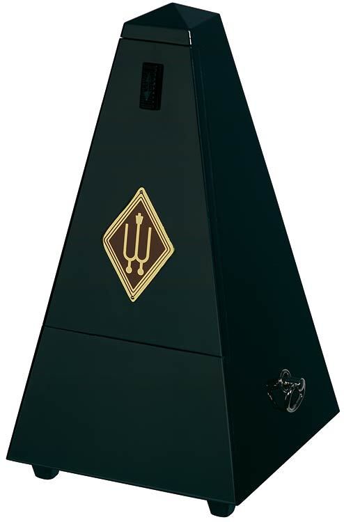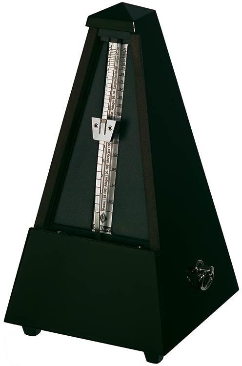 Wittner 810 Series Solid Wood Metronome with Bell in High Gloss Black Finish FEATURES: Maelzel System Solid wood casing Black coloured High gloss finish Mechanical clockwork with Bell No batteries required Made in Germany