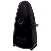 Plastic casing, Black colour, without bell metronome with a mechanical clockwork, No batteries required, Made in Germany.