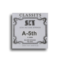 A high quality silver wound, tie end classical string. Good for all applications, whether a student just learning, or the teacher instructing. Gauge: A-5TH Package: 1 Single String S.I.T. ( Stay In Tune )... It is our goal that you will always be in tune if you are using any of our products. S.I.T. Strings was founded on a belief that a guitar string is more than just an accessory of little importance, but rather an integral part of a musicians sound and voice. That is why, since 1980, we have been manufacturing strings one at a time, all here at the S.I.T. Strings factory in Akron, Ohio USA.